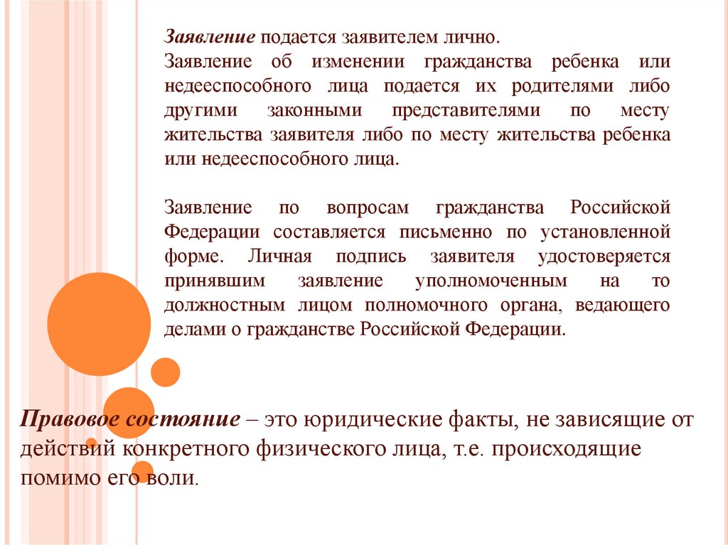 Заявление подается заявителем лично.Заявление об изменении гражданства ребенка или