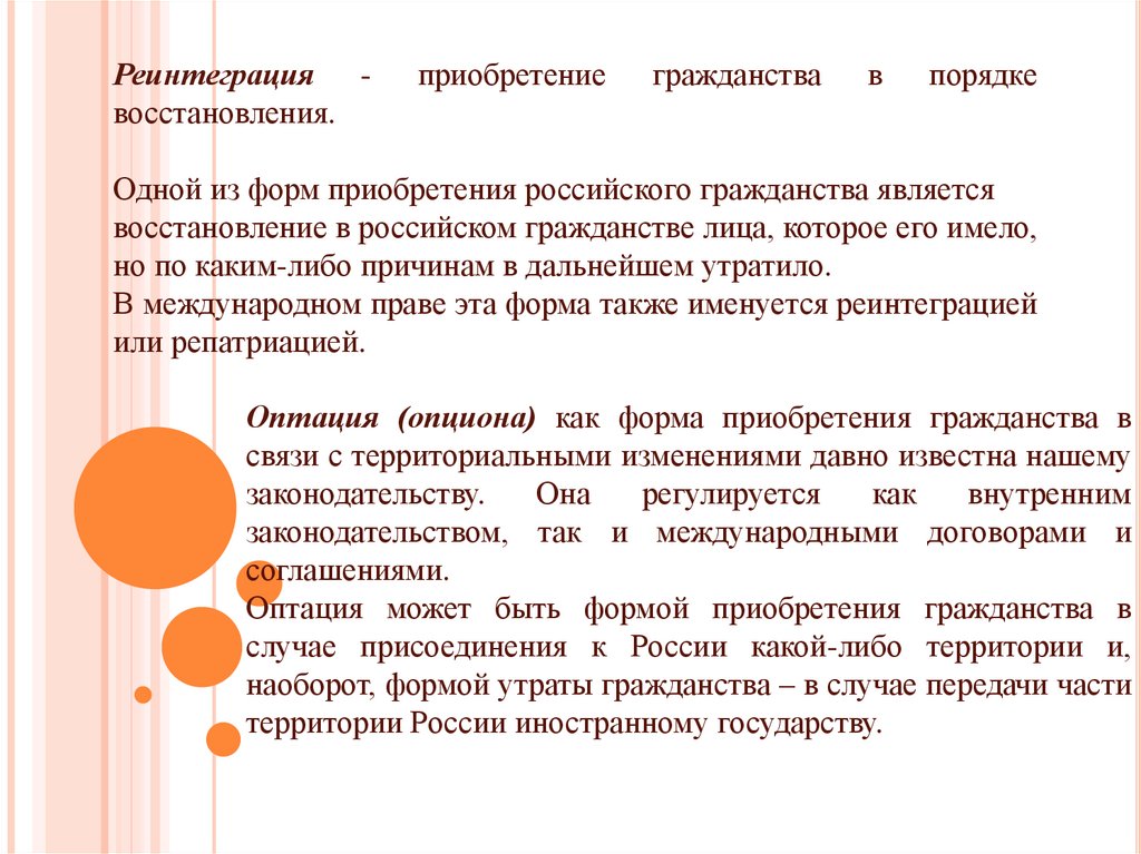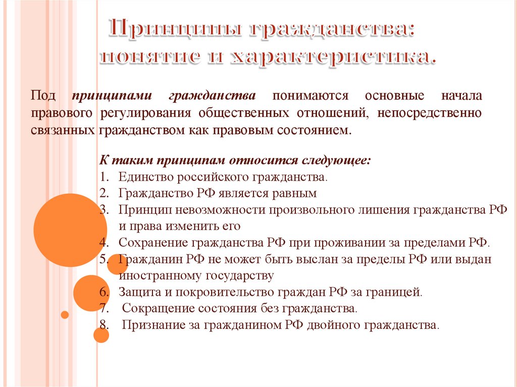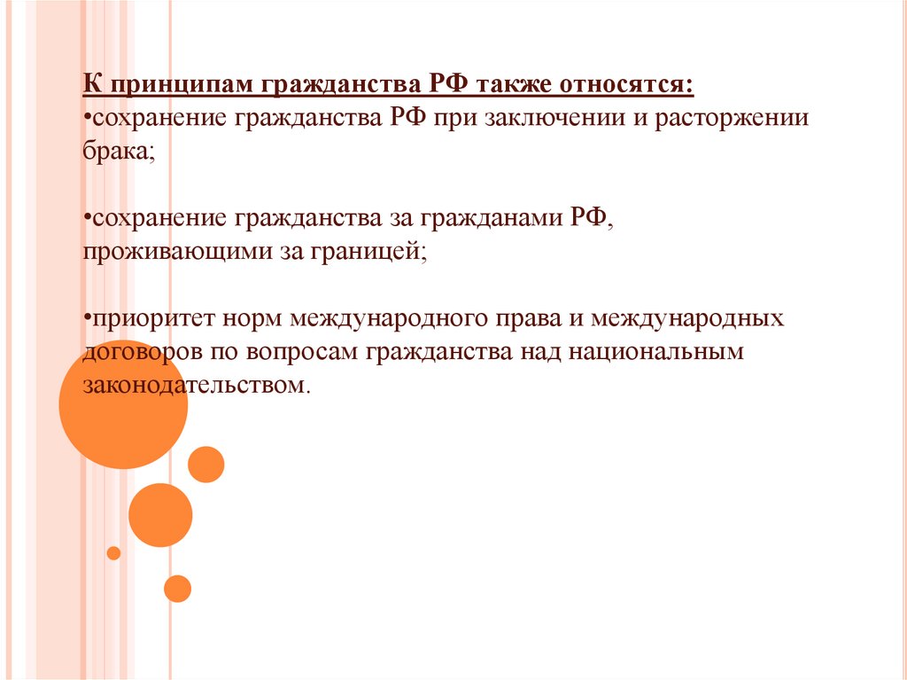 К принципам гражданства РФ также относятся:•сохранение гражданства РФ при заключении и расторжении
