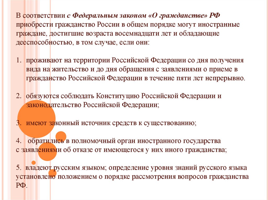В соответствии с Федеральным законом «О гражданстве» РФприобрести гражданство России в общем порядке могут иностранные