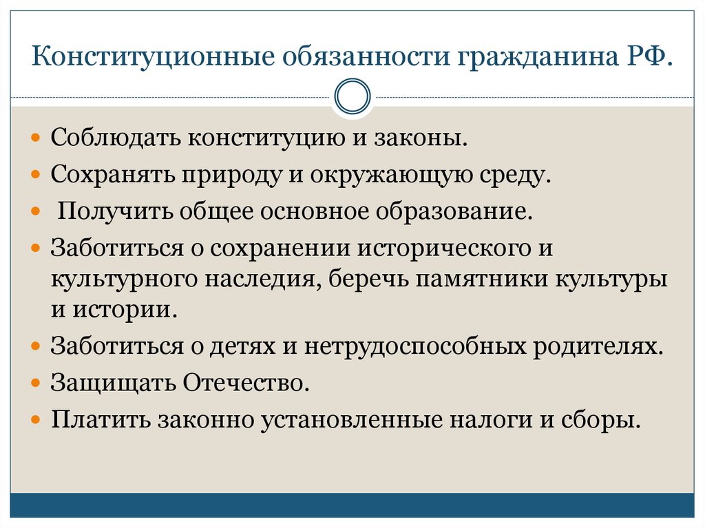 Конституционные обязанности гражданина РФ.Соблюдать конституцию и законы.