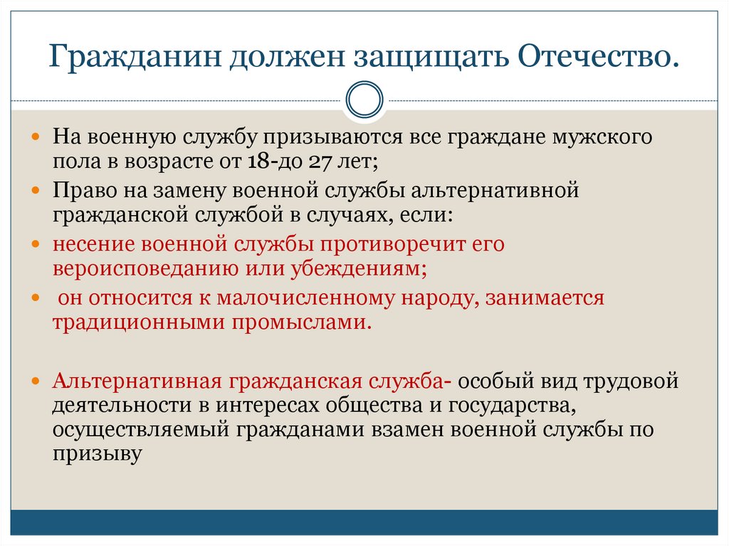 Гражданин должен защищать Отечество.На военную службу призываются все граждане мужского