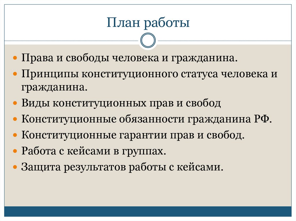 План работыПрава и свободы человека и гражданина.