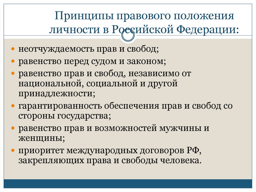Принципы правового положенияличности в Российской Федерации: