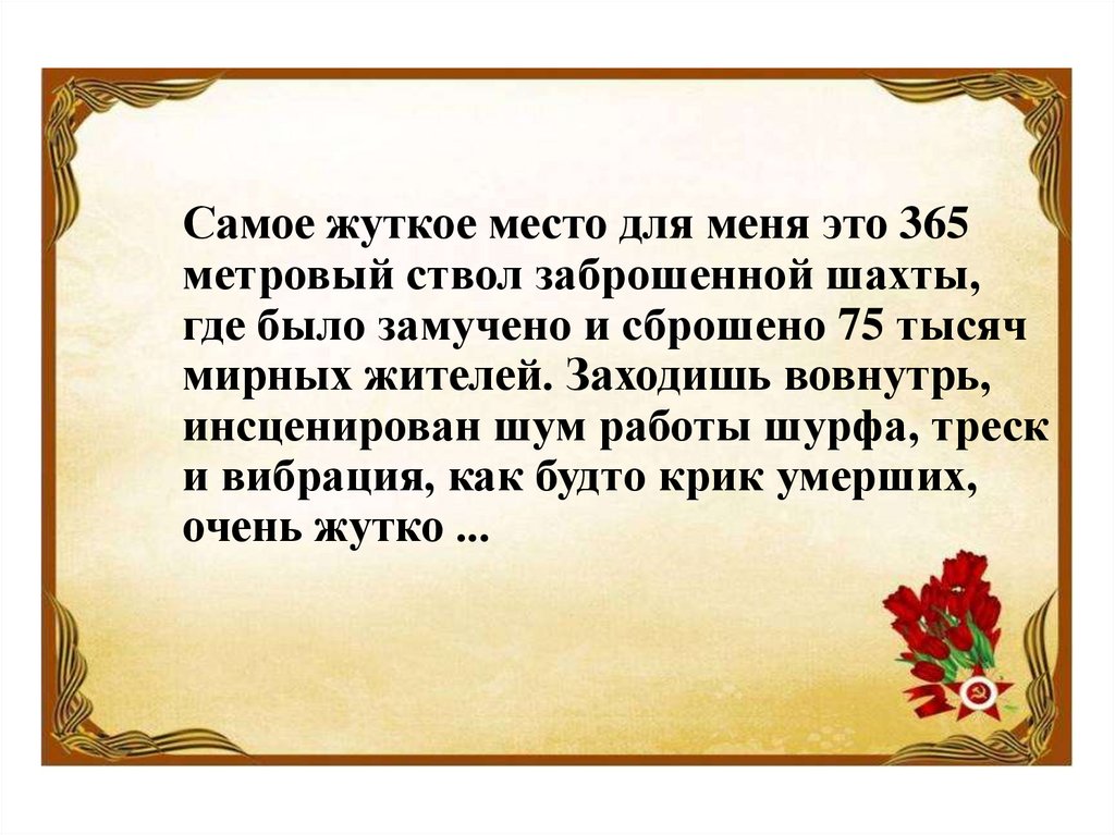 Самое жуткое место для меня это 365метровый ствол заброшенной шахты,