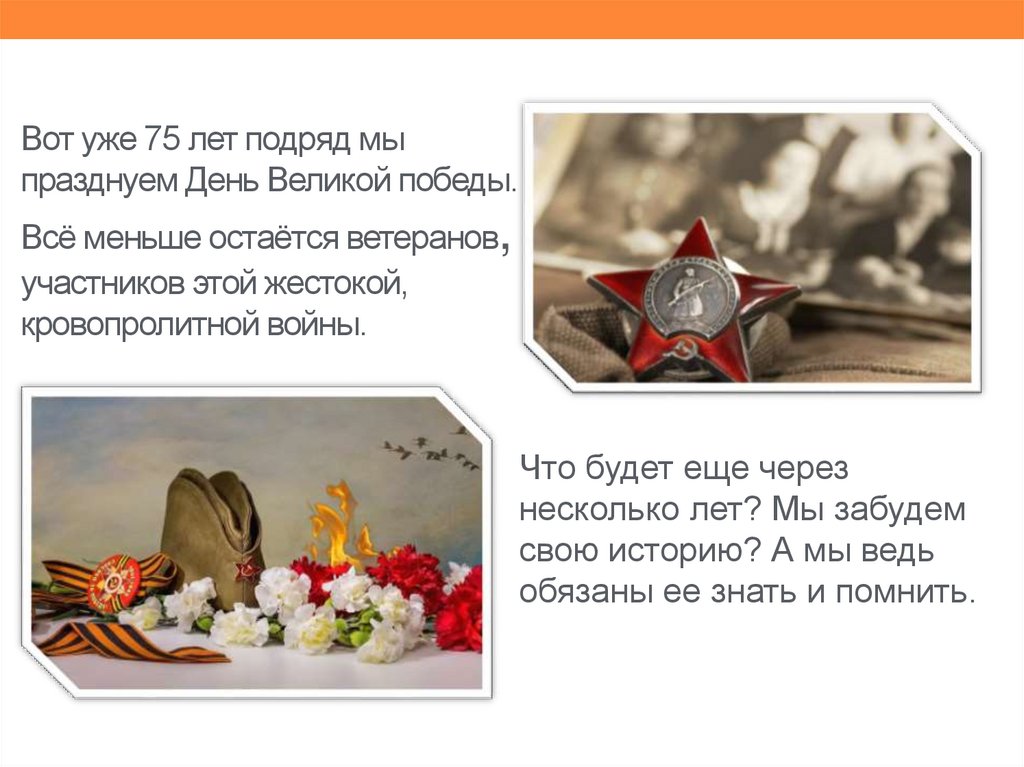 Вот уже 75 лет подряд мыпразднуем День Великой победы.