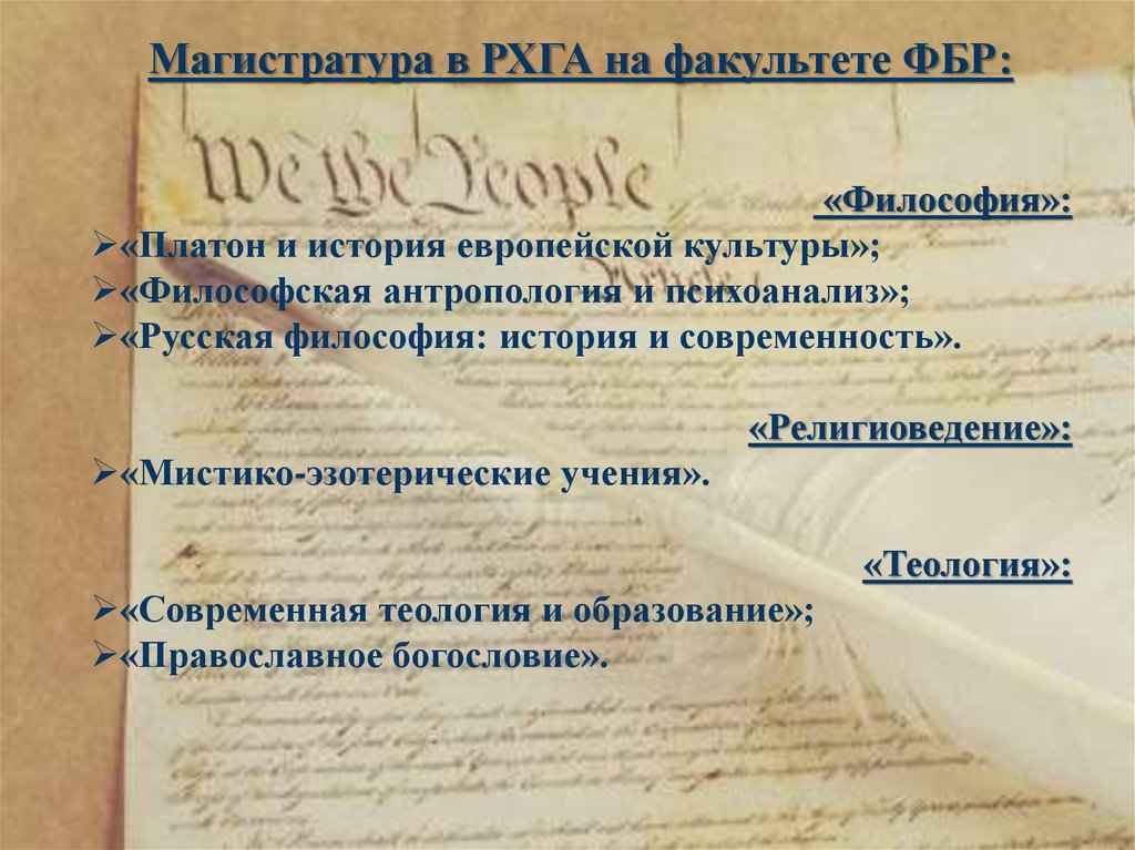 Магистратура в РХГА на факультете ФБР:«Философия»: