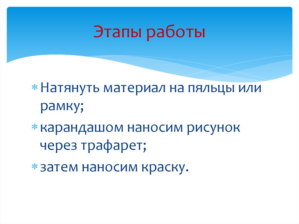Этапы работыНатянуть материал на пяльцы или