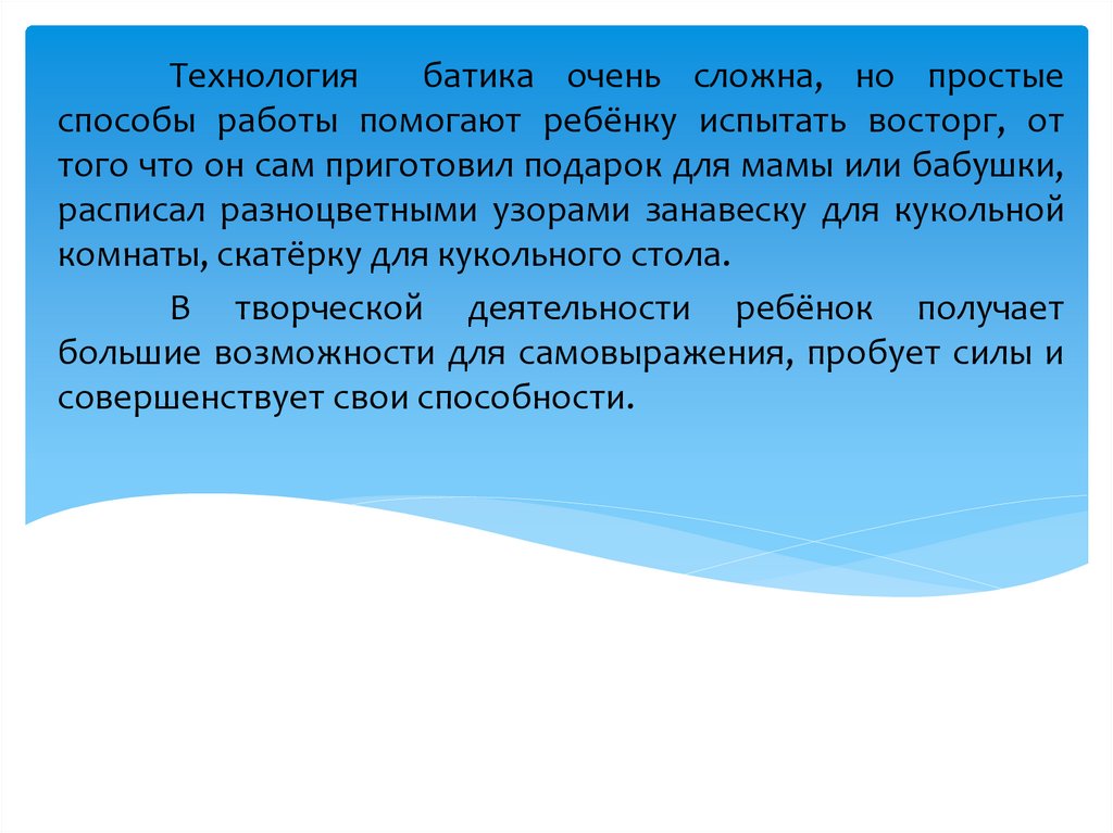 Технологиябатика очень сложна, но простые