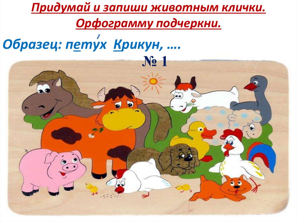 Придумай и запиши животным клички.Орфограмму подчеркни.