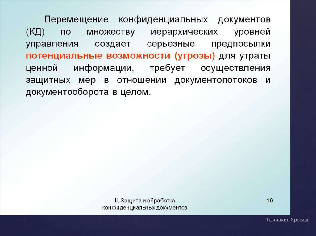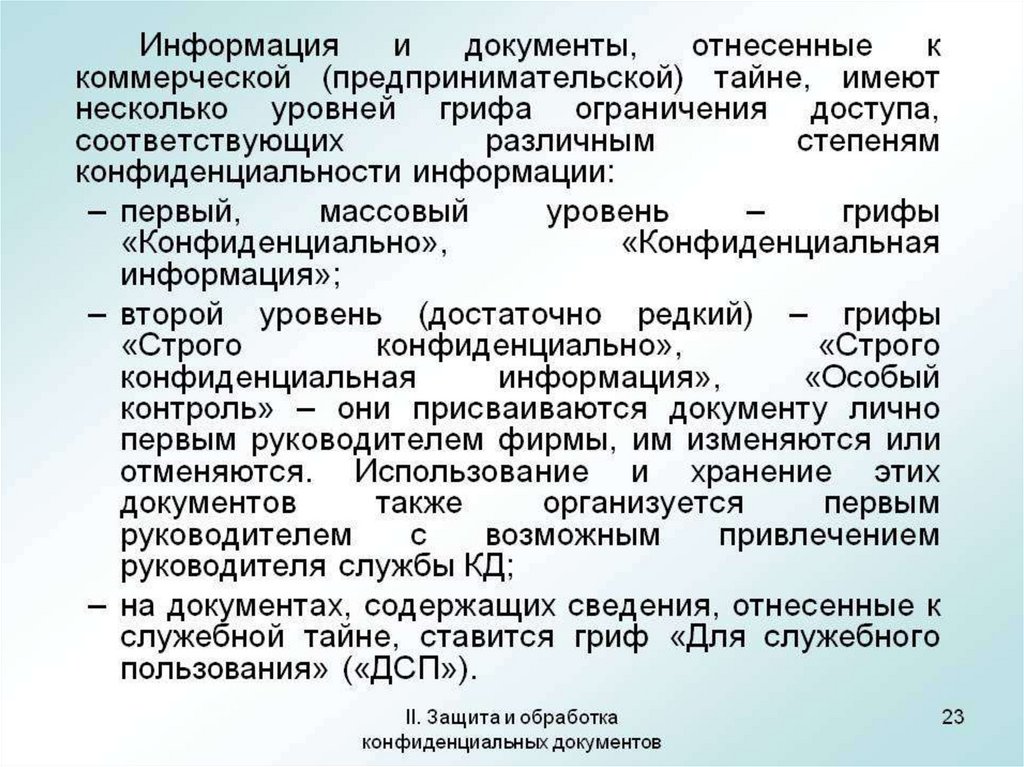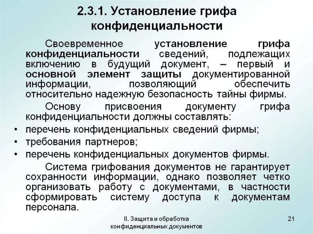 Защита и обработка конфиденциальных документов. Порядок работы исполнителя с конфиденциальными документами