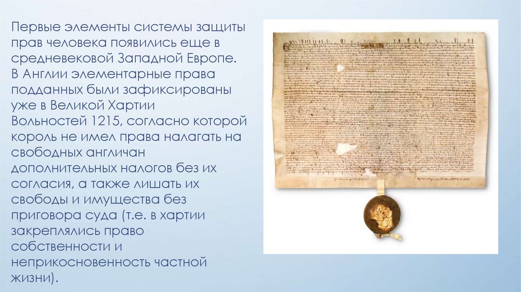 Первые элементы системы защитыправ человека появились еще в