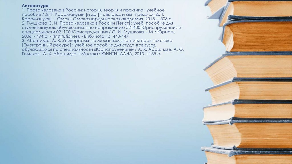 Литература:1. Права человека в России: история, теория и практика : учебное
