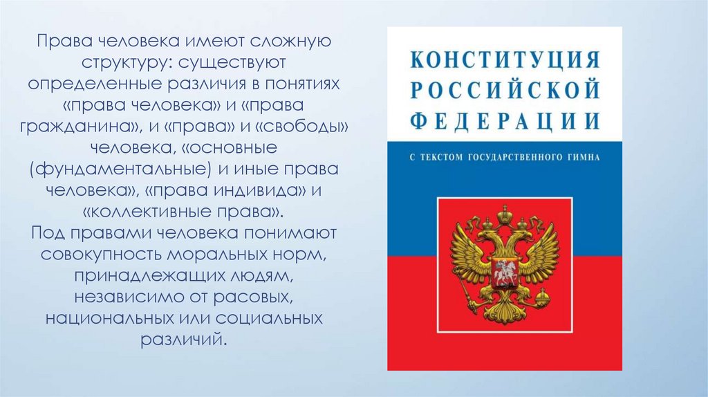 Права человека имеют сложнуюструктуру: существуют