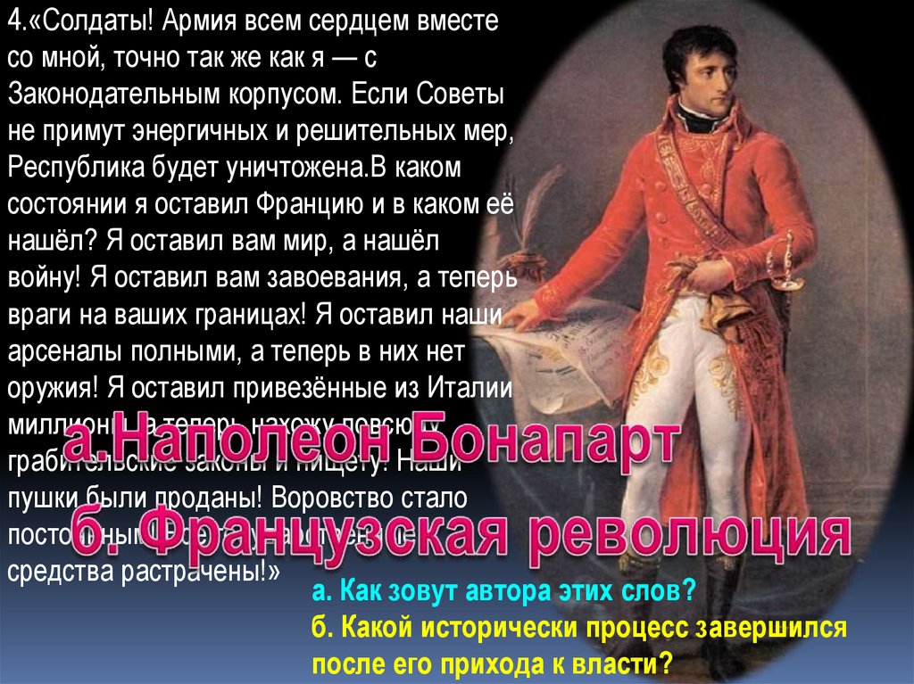 4.«Солдаты! Армия всем сердцем вместесо мной, точно так же как я — с