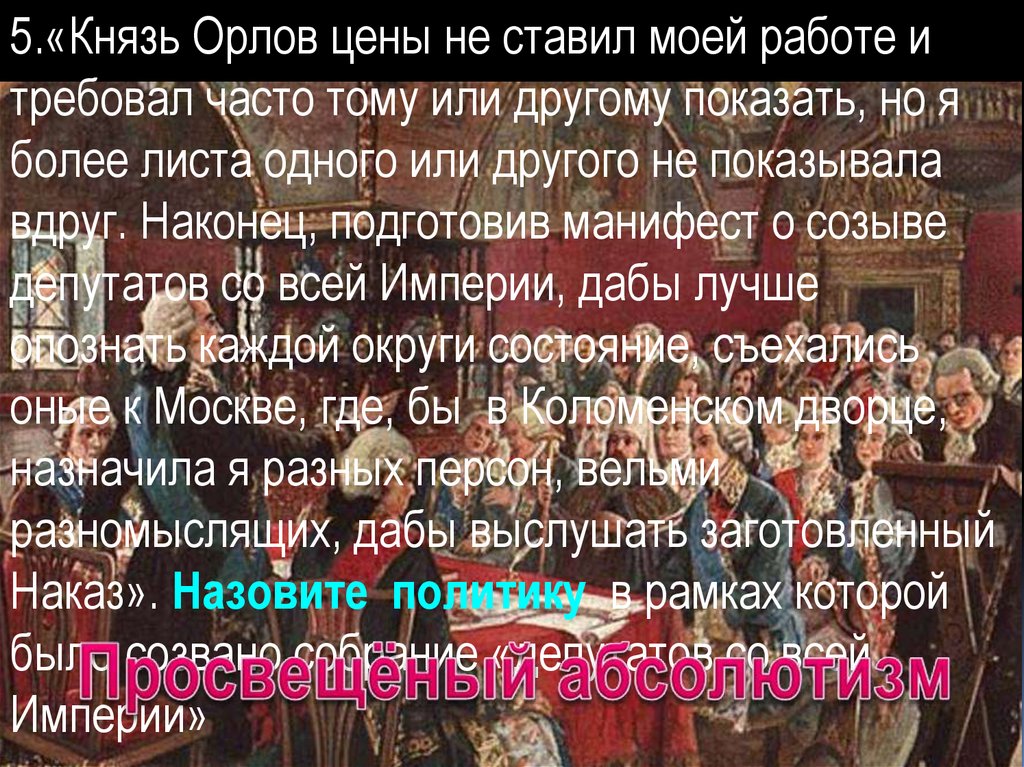 5.«Князь Орлов цены не ставил моей работе итребовал часто тому или другому показать, но я