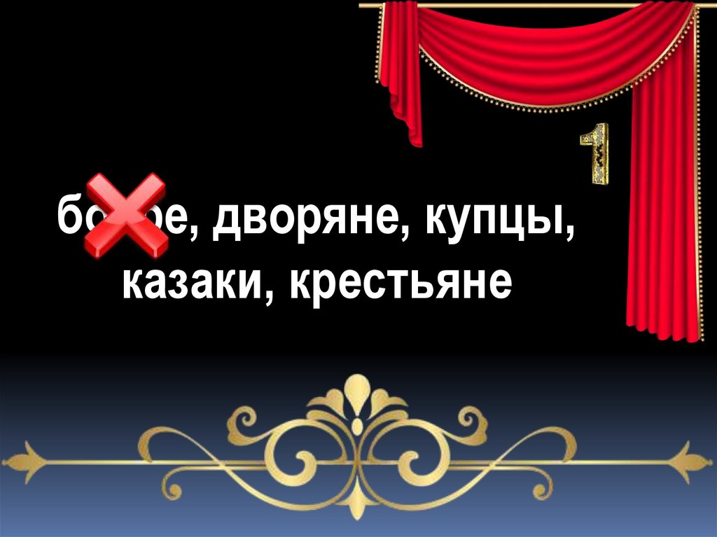 бояре, дворяне, купцы,казаки, крестьяне