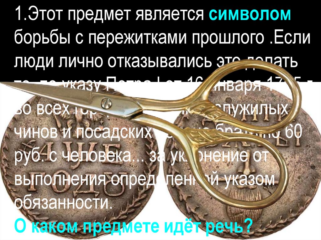 1.Этот предмет является символомборьбы с пережитками прошлого .Если