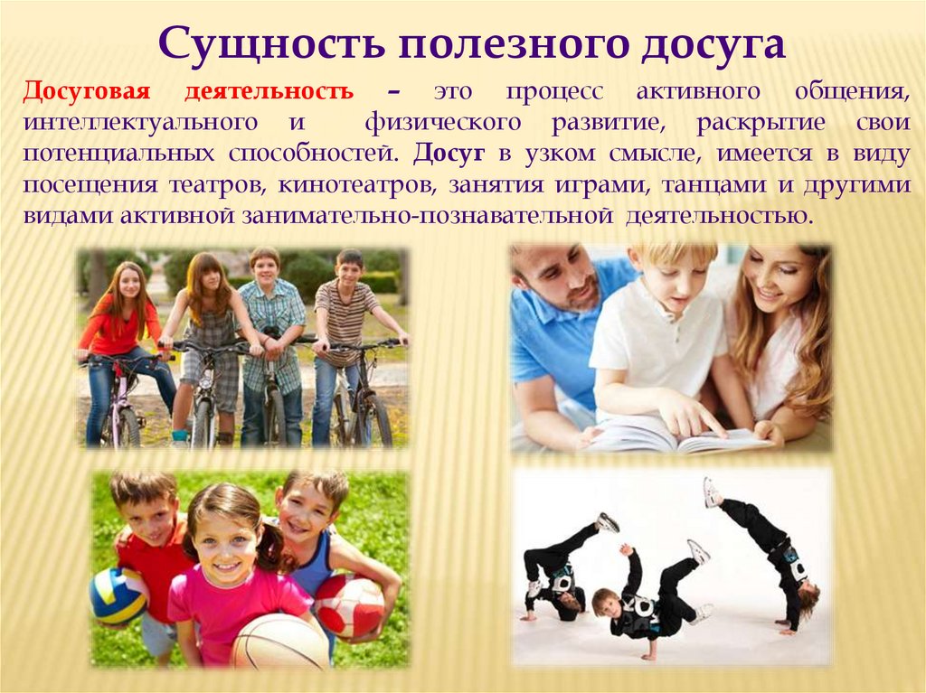 Сущность полезного досугаДосуговая деятельность – это процесс активного общения,