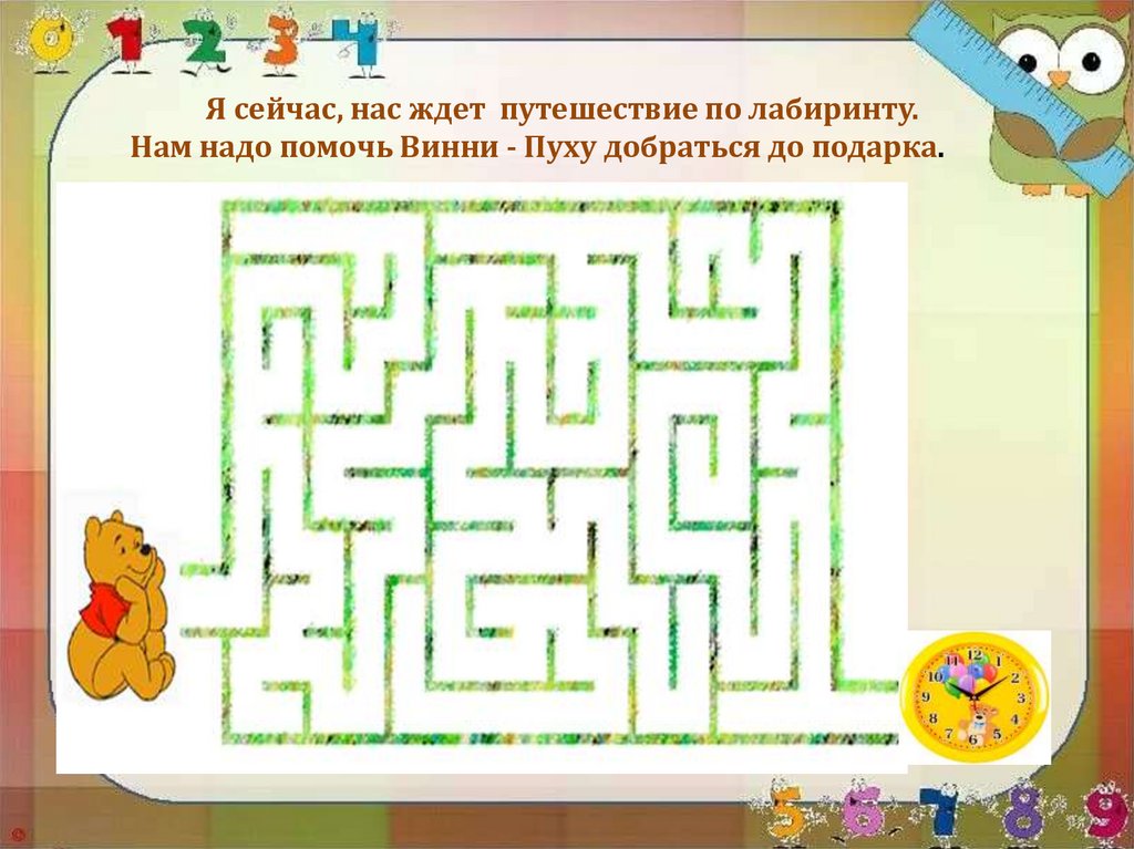 Я сейчас, нас ждет путешествие по лабиринту.Нам надо помочь Винни - Пуху добраться до подарка.