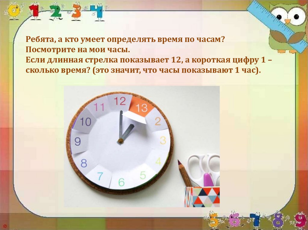 Ребята, а кто умеет определять время по часам?Посмотрите на мои часы.