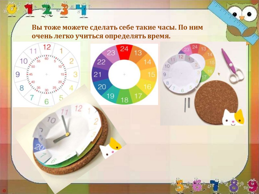 Вы тоже можете сделать себе такие часы. По нимочень легко учиться определять время.