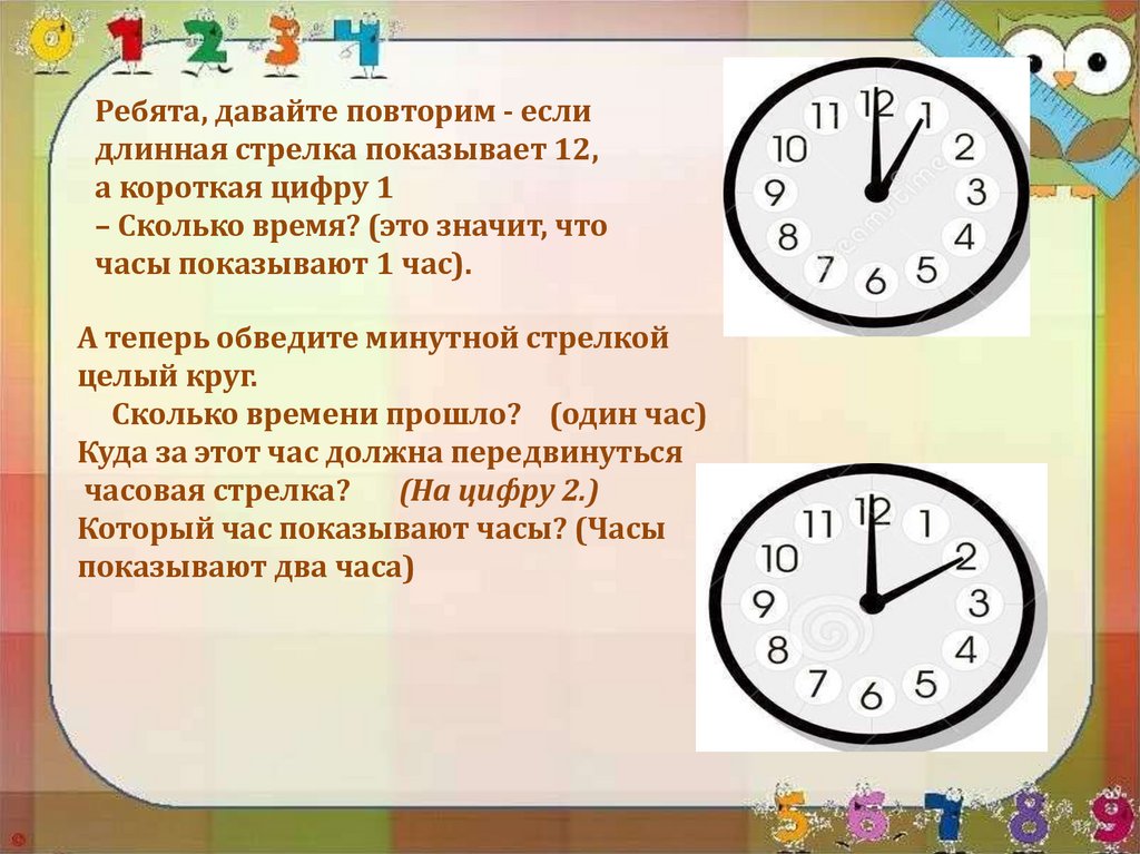 Ребята, давайте повторим - еслидлинная стрелка показывает 12,