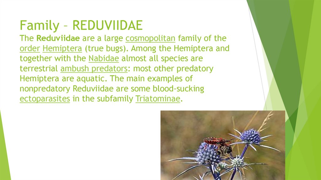 Family – REDUVIIDAEThe Reduviidae are a large cosmopolitan family of the