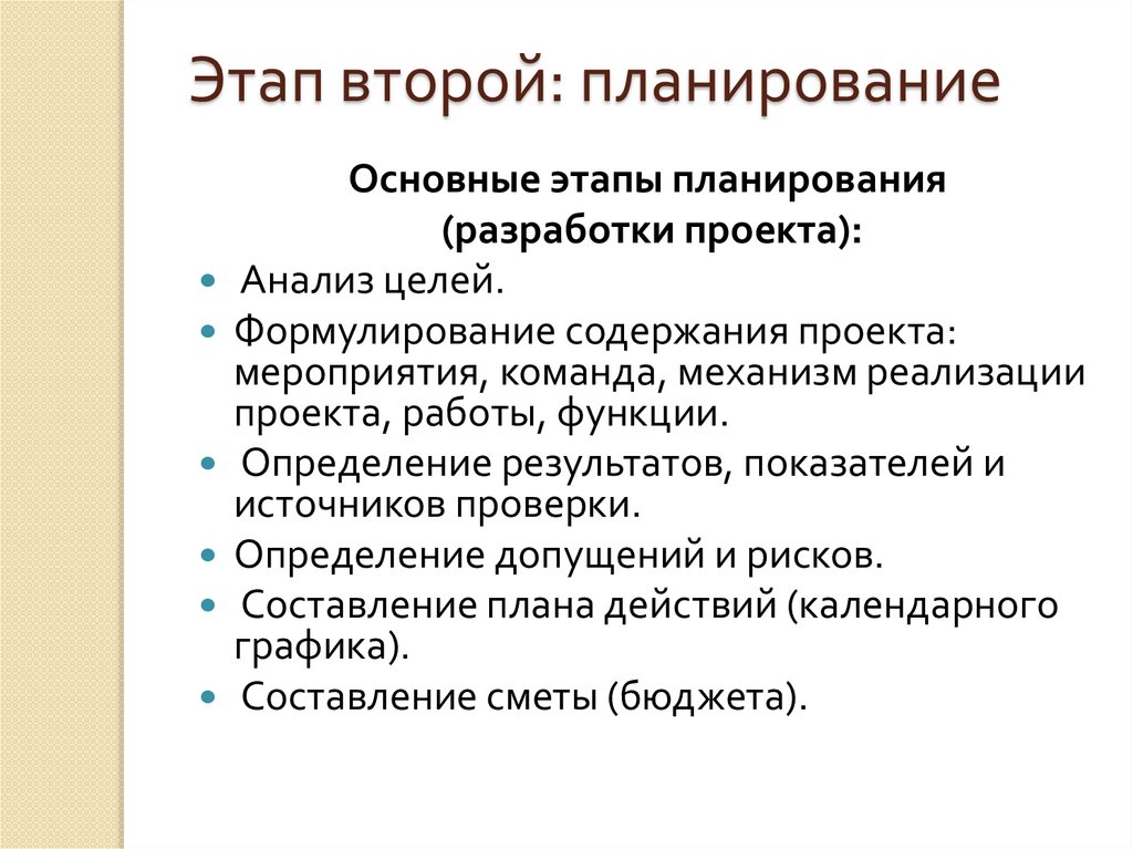ходе проекта, этапы реализации