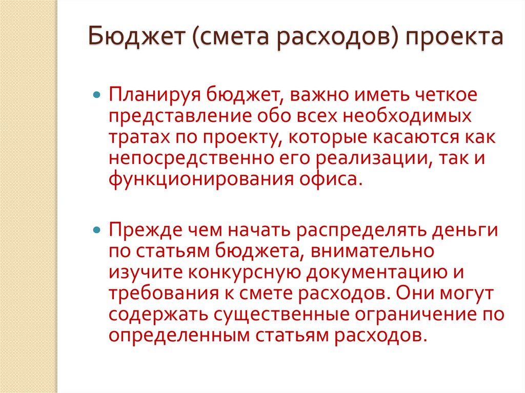 Ясным, четким – должен содержать точное описание расходов, для которых