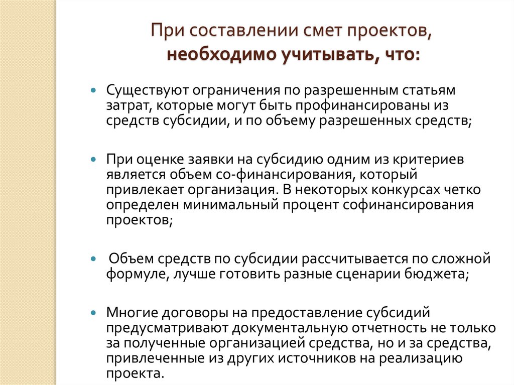 При составлении смет проектов,необходимо учитывать, что:
