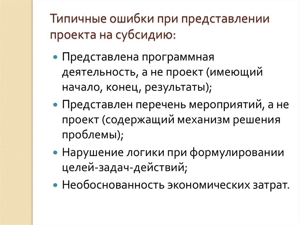 Типичные ошибки при представлениипроекта на субсидию: