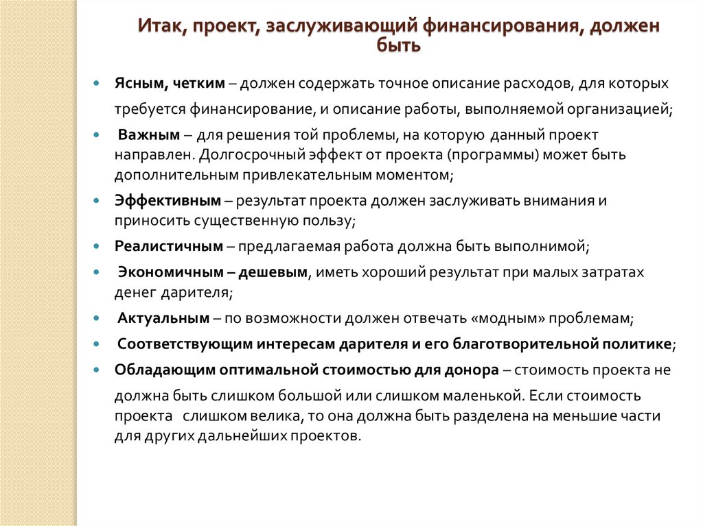 Итак, проект, заслуживающий финансирования, долженбыть
