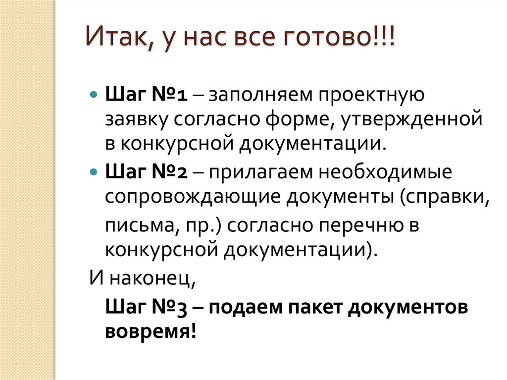 Итак, у нас все готово!!!Шаг №1 – заполняем проектную