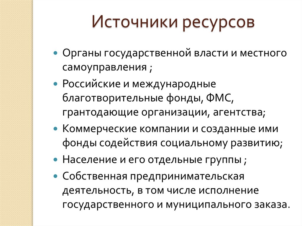 Источники ресурсовОрганы государственной власти и местного