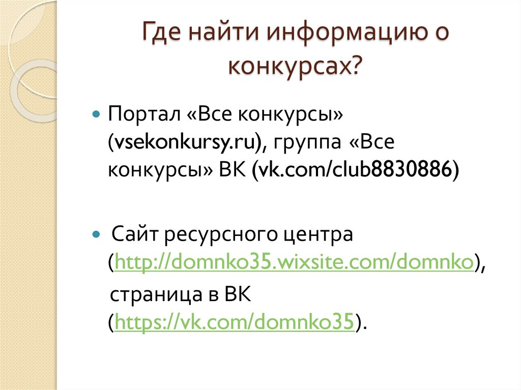 Где найти информацию оконкурсах?