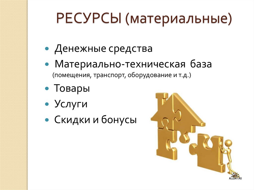 РЕСУРСЫ (материальные)Денежные средства