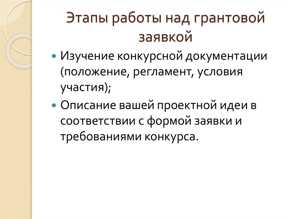 Этапы работы над грантовойзаявкой