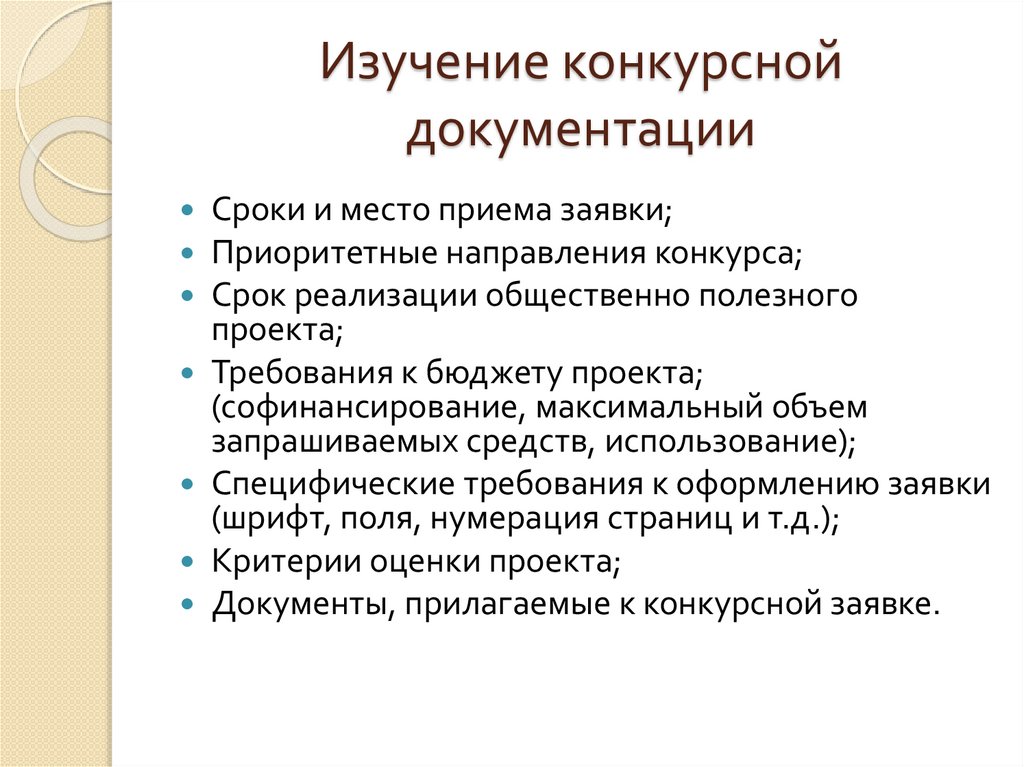 Изучение конкурсной документации