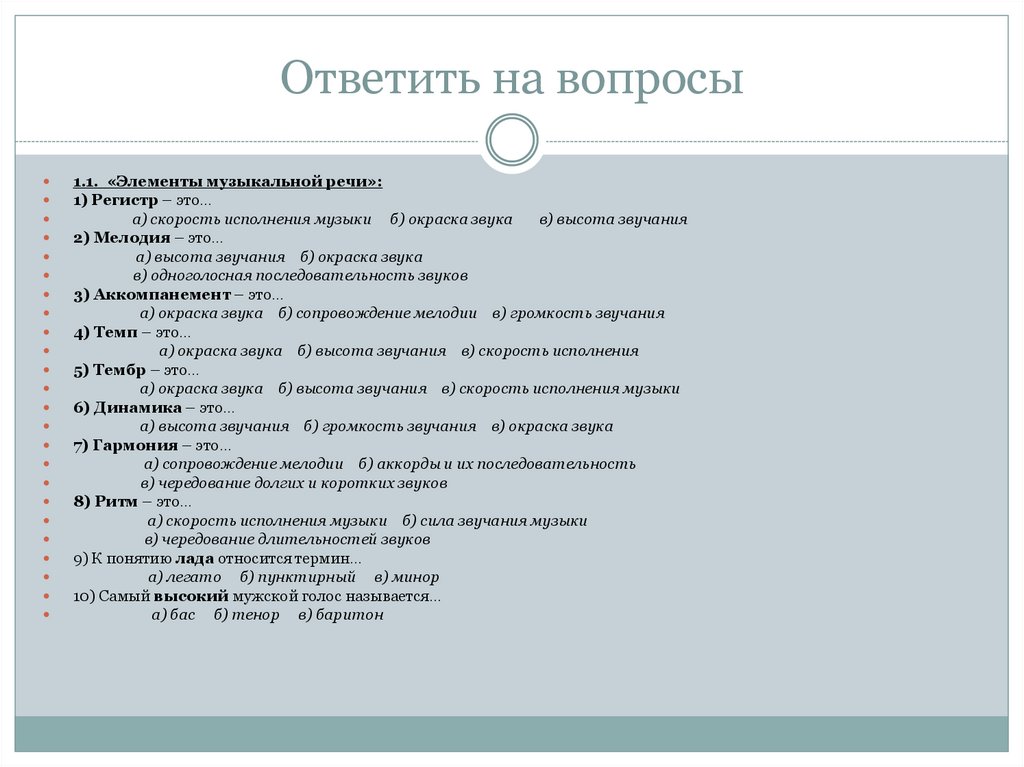 Ответить на вопросы1.1. «Элементы музыкальной речи»: