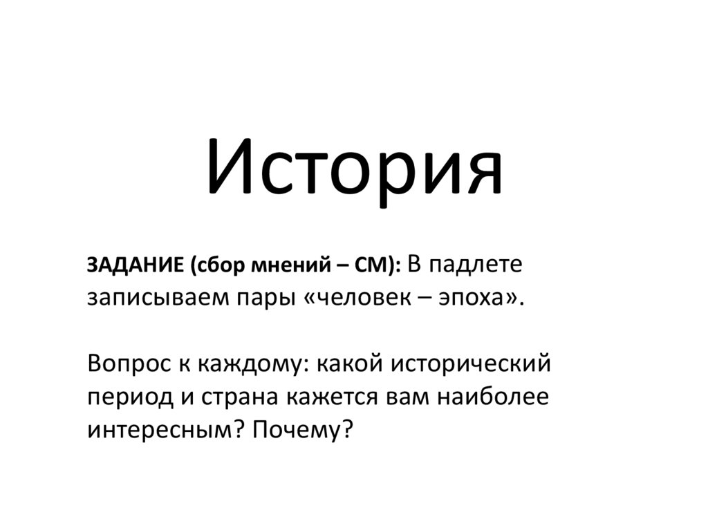 ЗАДАНИЕ (сбор мнений – СМ): В падлетезаписываем пары «человек – эпоха».