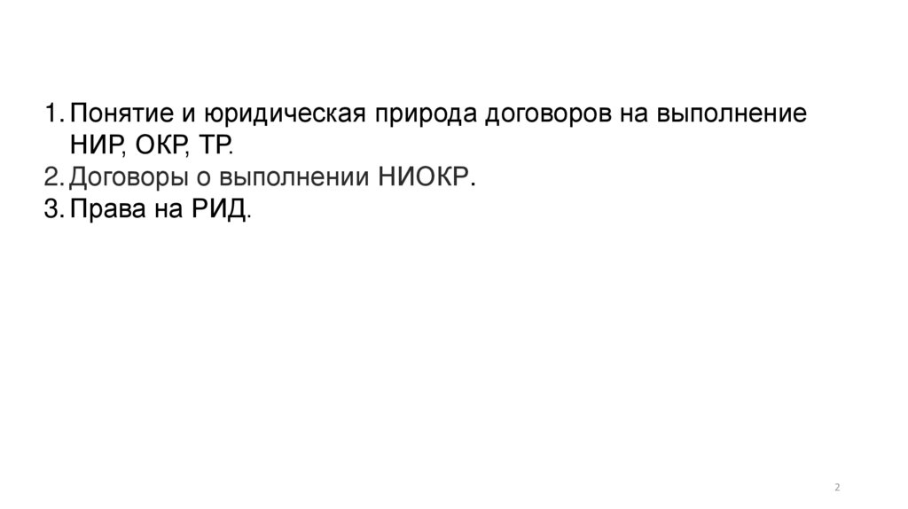Понятие и юридическая природа договоров на выполнение НИР, ОКР, ТР. Модуль 1. Тема 2