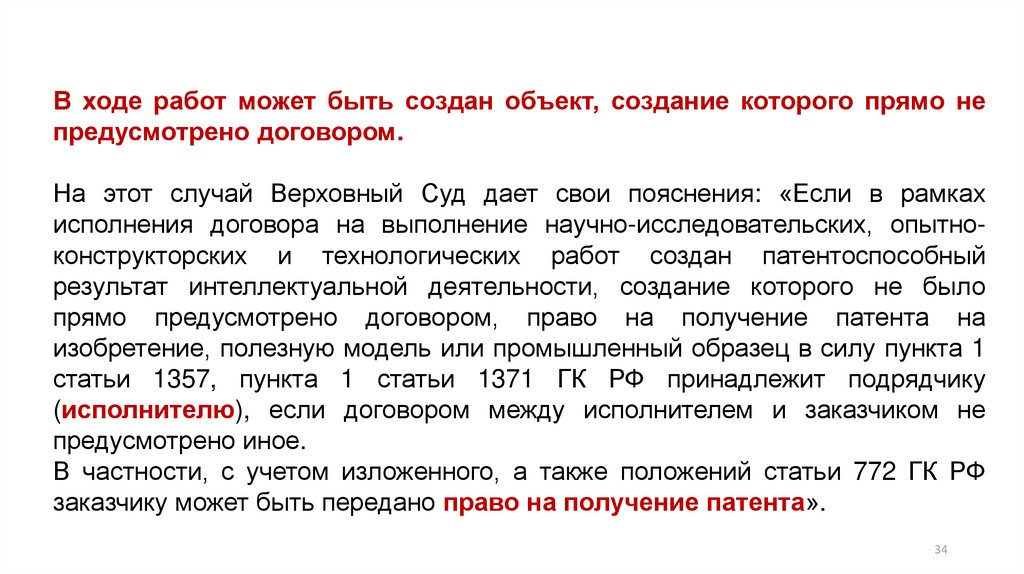 исполнения договора на выполнение научно-исследовательских, опытноконструкторских и технологических работ создан патентоспособный