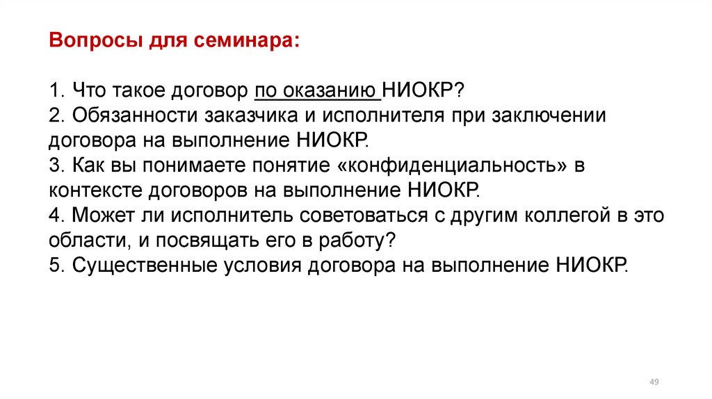 Вопросы для семинара:1. Что такое договор по оказанию НИОКР?