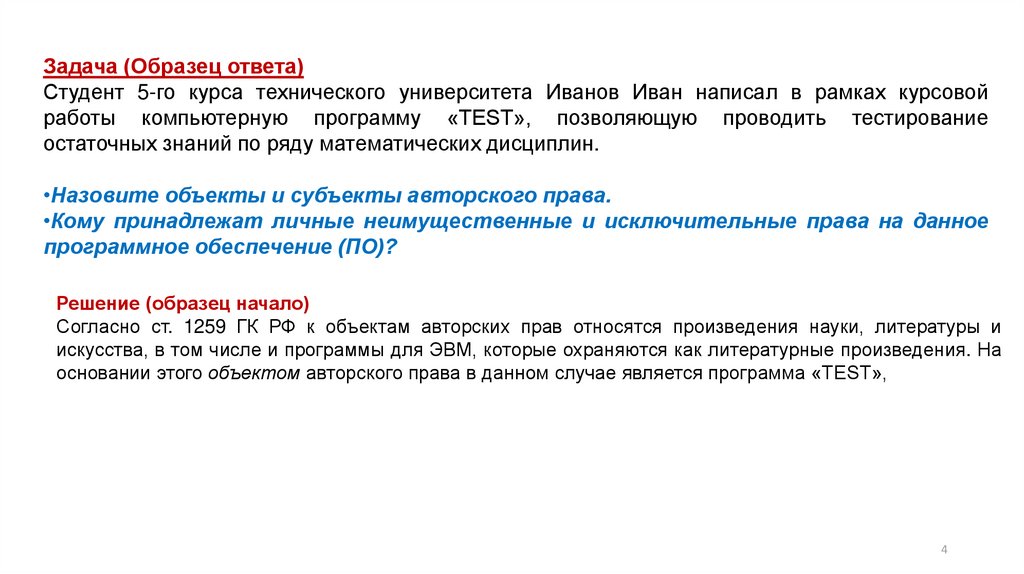 Задача (Образец ответа)Студент 5-го курса технического университета Иванов Иван написал в рамках курсовой