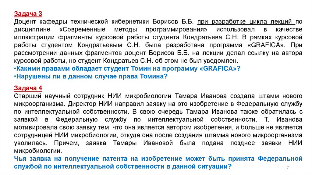 Задача 3Доцент кафедры технической кибернетики Борисов Б.Б. при разработке цикла лекций по