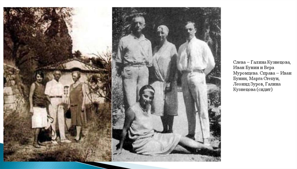 Слева – Галина Кузнецова,Иван Бунин и Вера