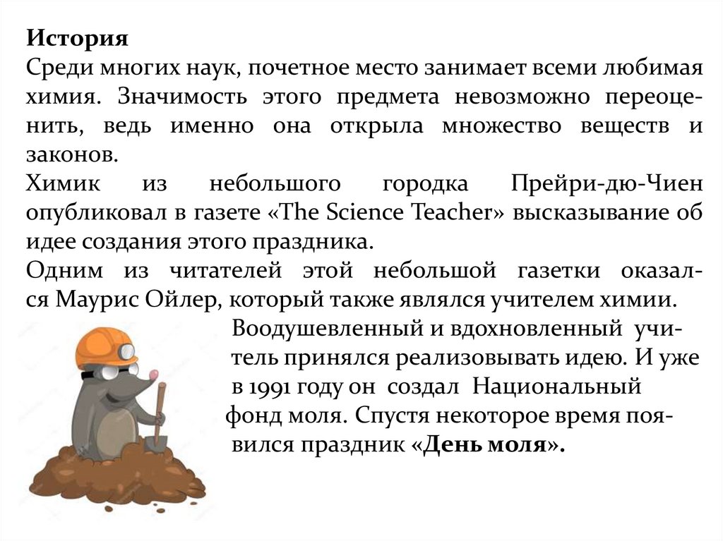 фонд моля. Спустя некоторое время появился праздник «День моля».