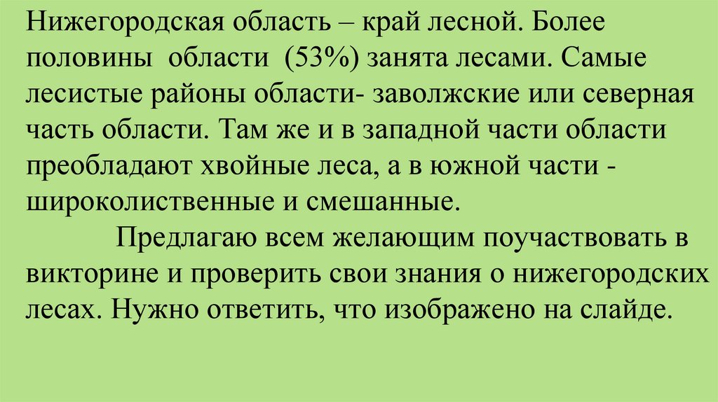 Нижегородская область – край лесной