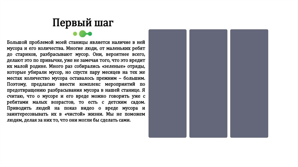 предотвращению разбрасывания мусора в нашей станице. Я