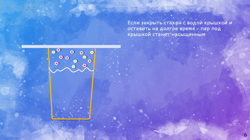 Если закрыть стакан с водой крышкой иоставить на долгое время – пар под